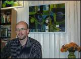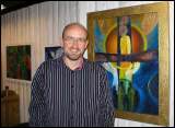 Markus Rapp vor dem Bild "Lebensspuren 1" das er zur 1. Ortenauer AIDS-Gala 2006 zur Versteigerung anbietet |