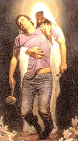 Kunst von heute: Hilfbereitstützt Jesus den ohnmächtigen "Henker", der... |